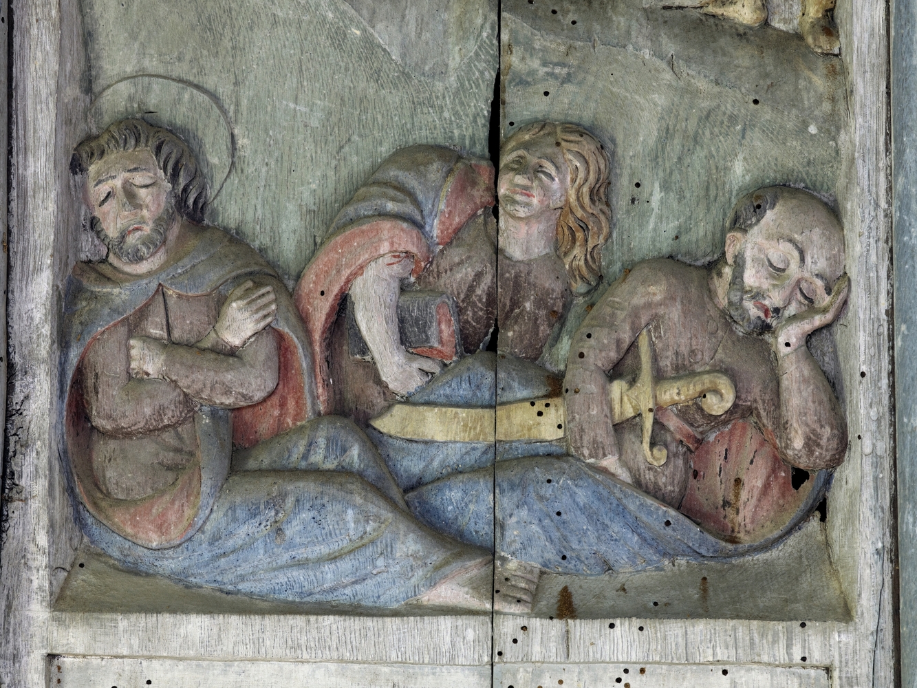 Tribune en bois polychrome, compartiment sculpté représentant des scènes de la Passion, le jardin des oliviersImmatriculation