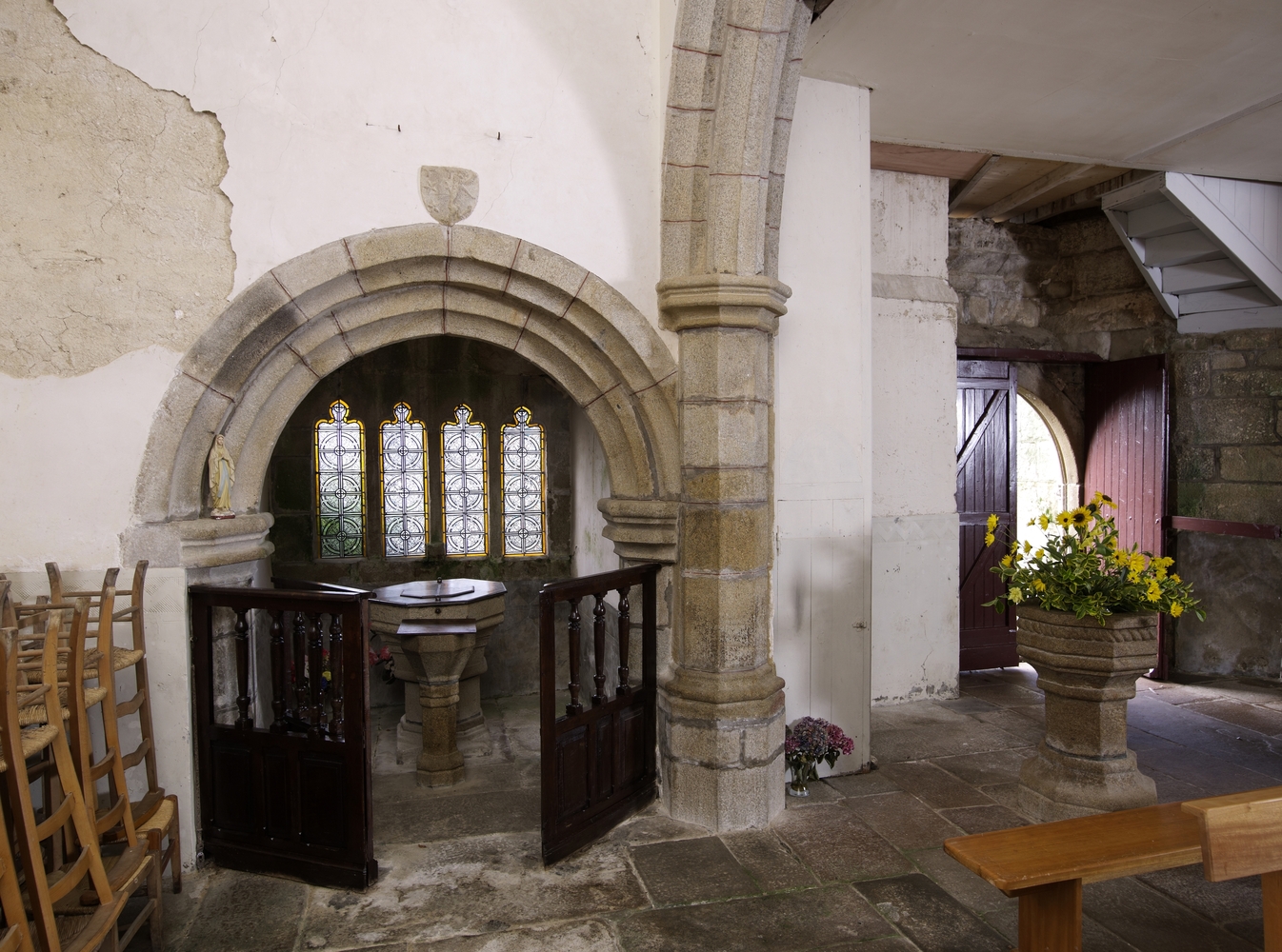 Vue de la chapelle des fonts baptismaux (aménagée dans l'espace de l'ancien ossuaire d'attache)Immatriculation