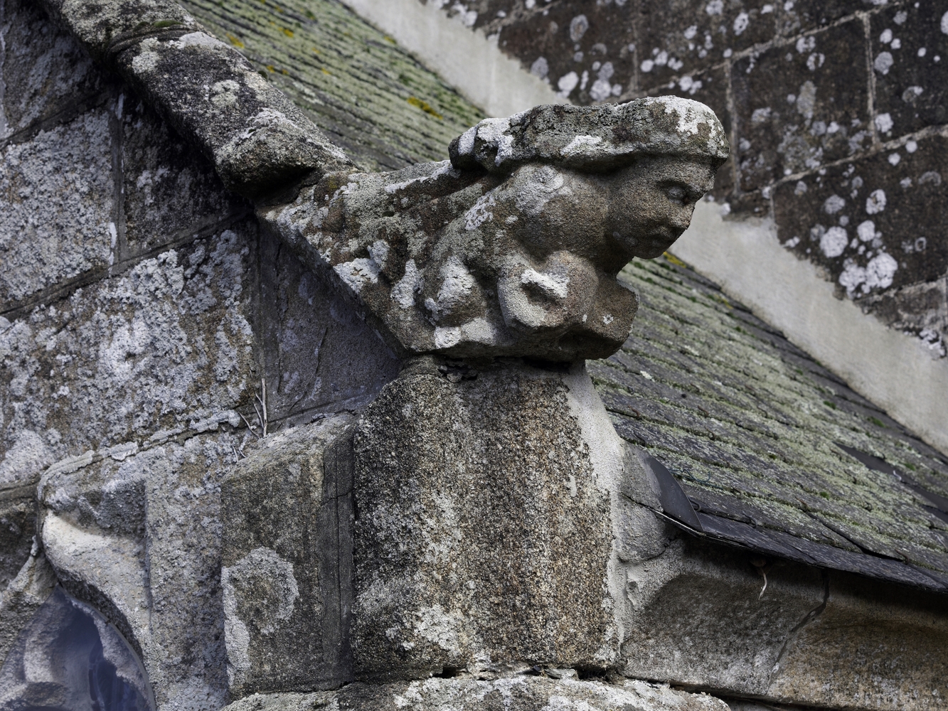Vue de l'ossuaire d'attache en appentis : crossette sculptée du rampantImmatriculation