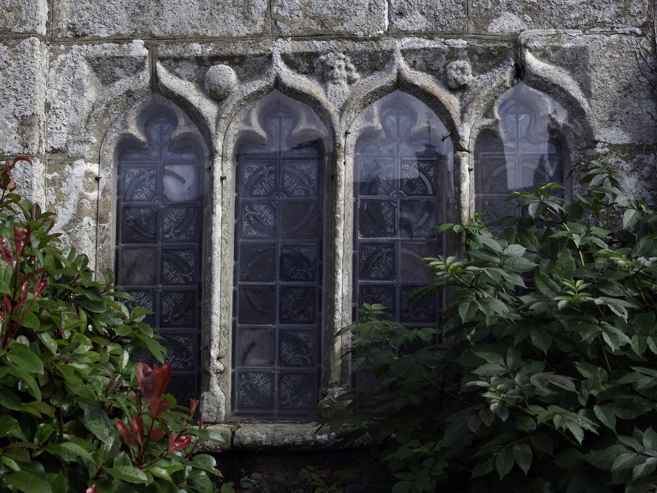 Vue de l'ossuaire d'attache en appentis : détail des baies gothiquesImmatriculation