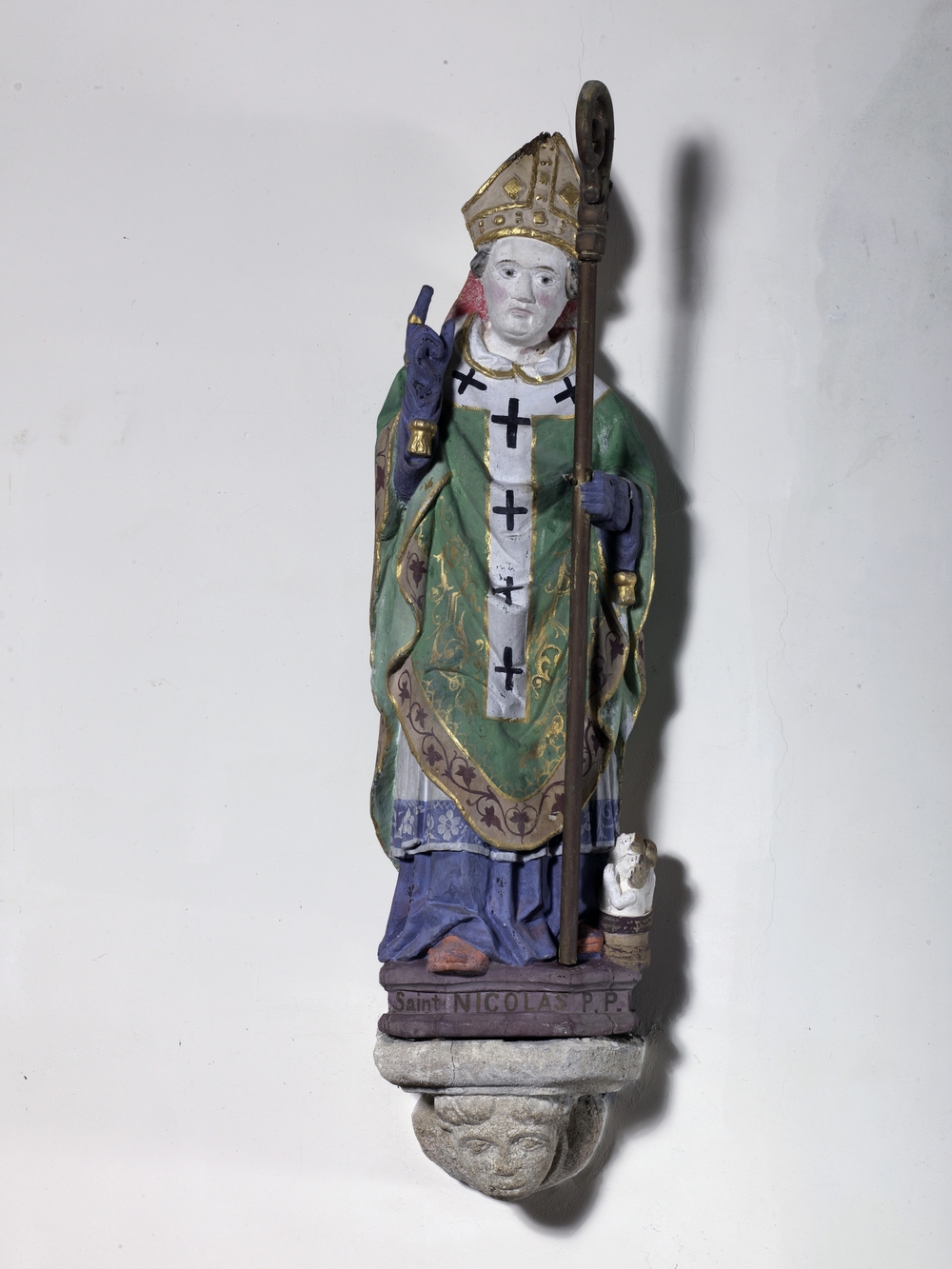 Vue de la statue de saint Nicolas sur une consoleImmatriculation