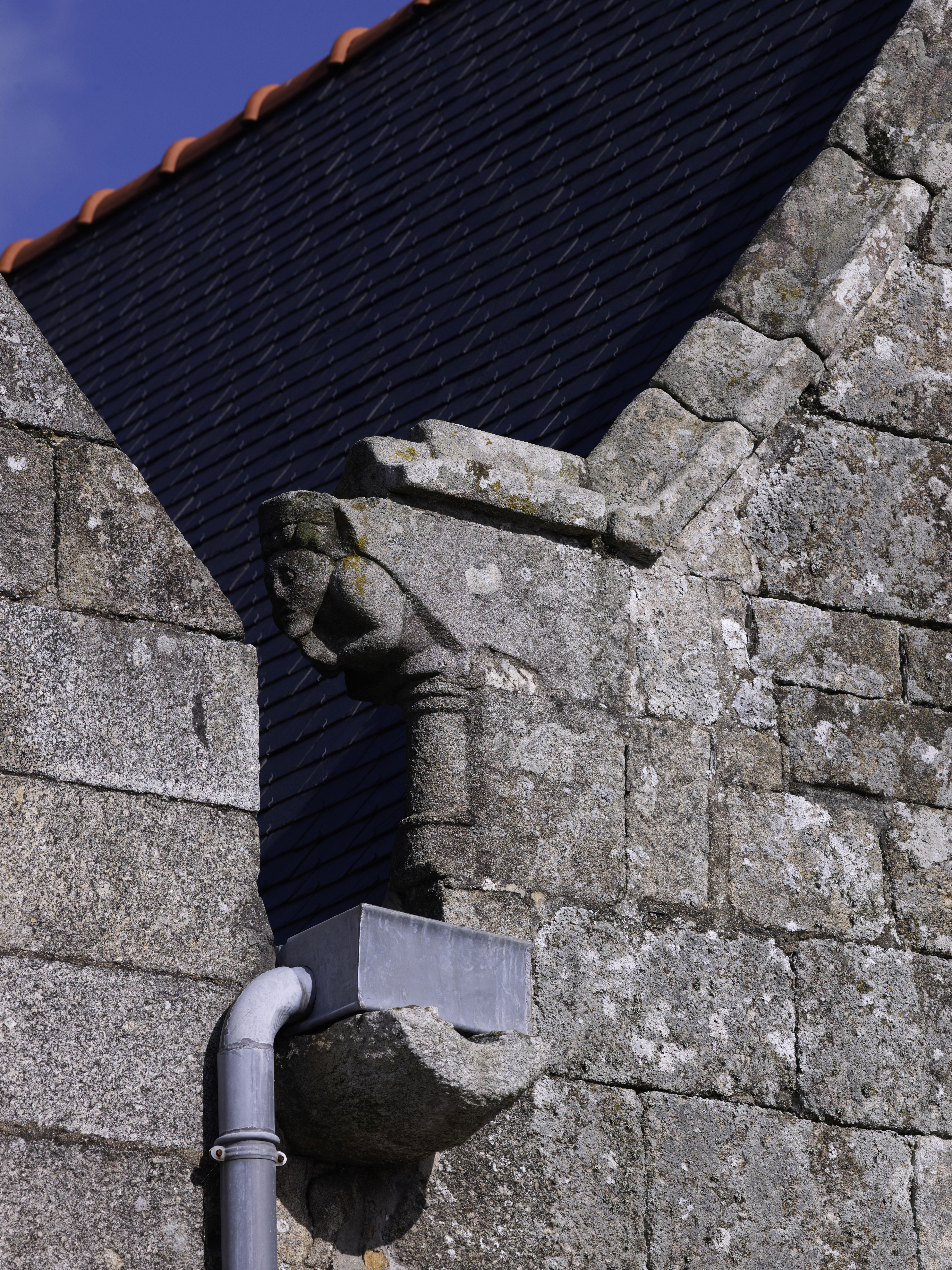 Cavan, le bourg : église paroissiale Saint-Chéron, détail du rampant du transept sudImmatriculation