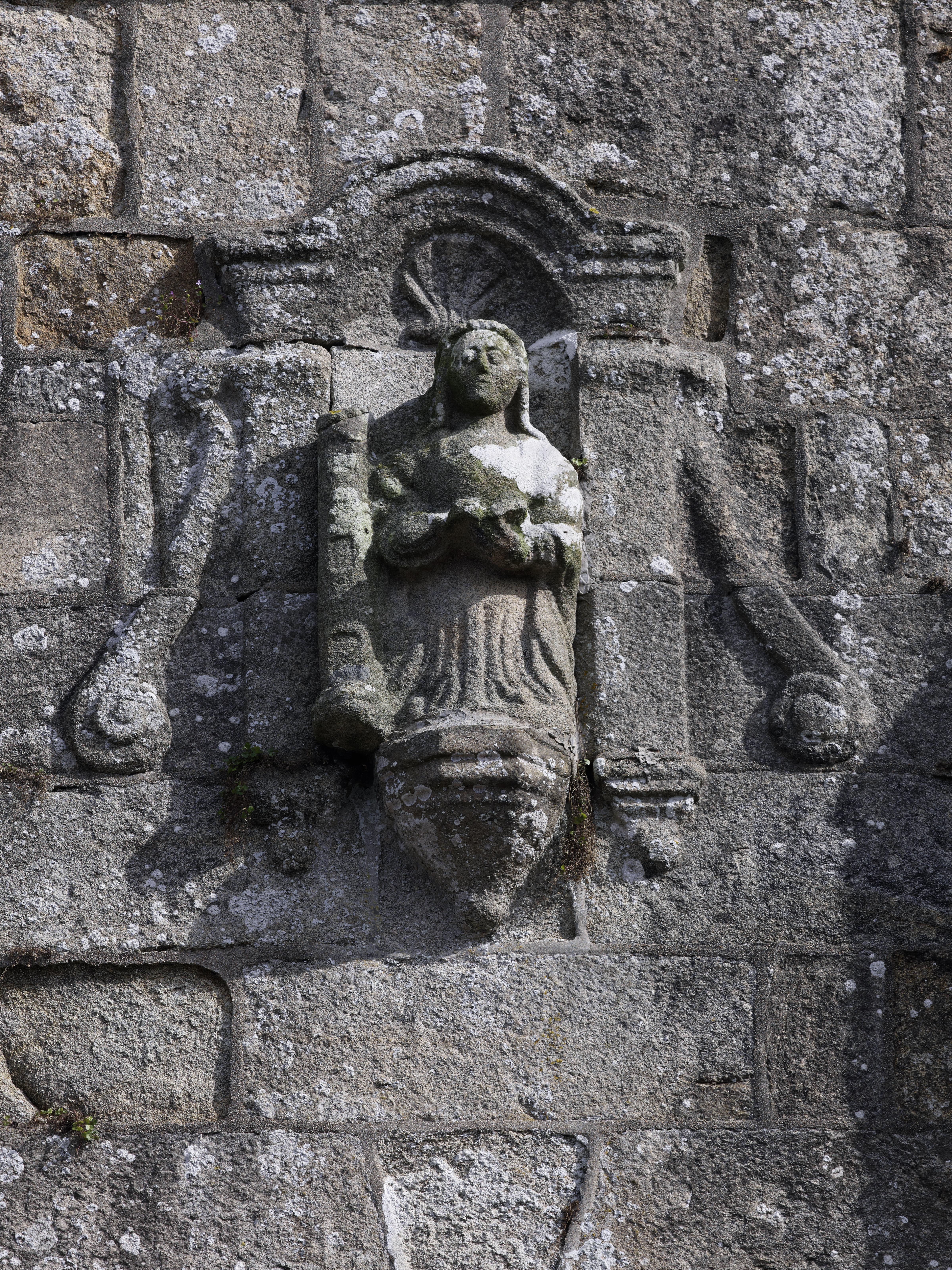 Cavan, le bourg : église paroissiale Saint-Chéron, clocher, détail de la sculptureImmatriculation