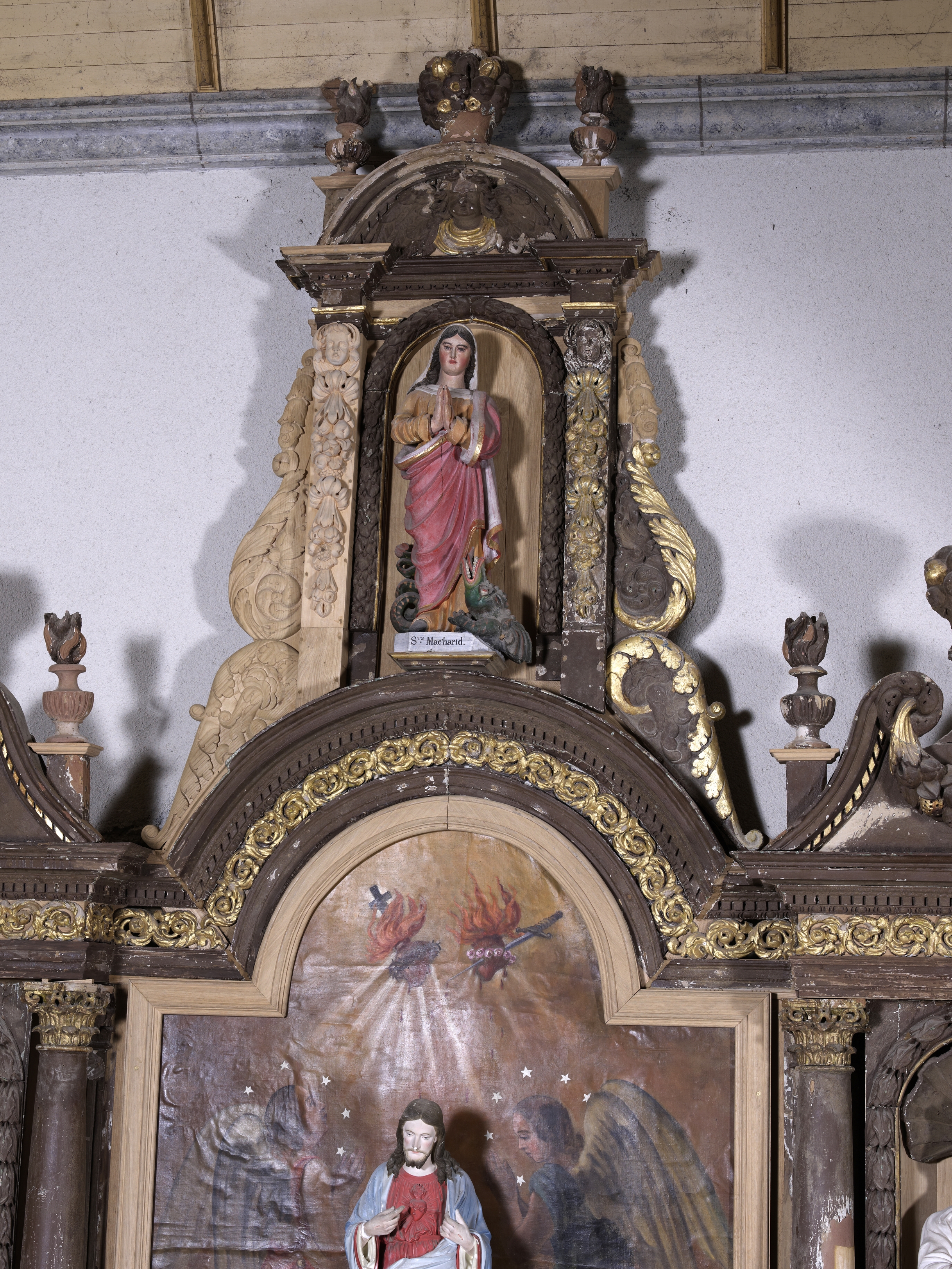 Cavan, le bourg : église paroissiale Saint-Chéron, vue intérieure, retable nord, statue représentant sainte MargueriteImmatriculation