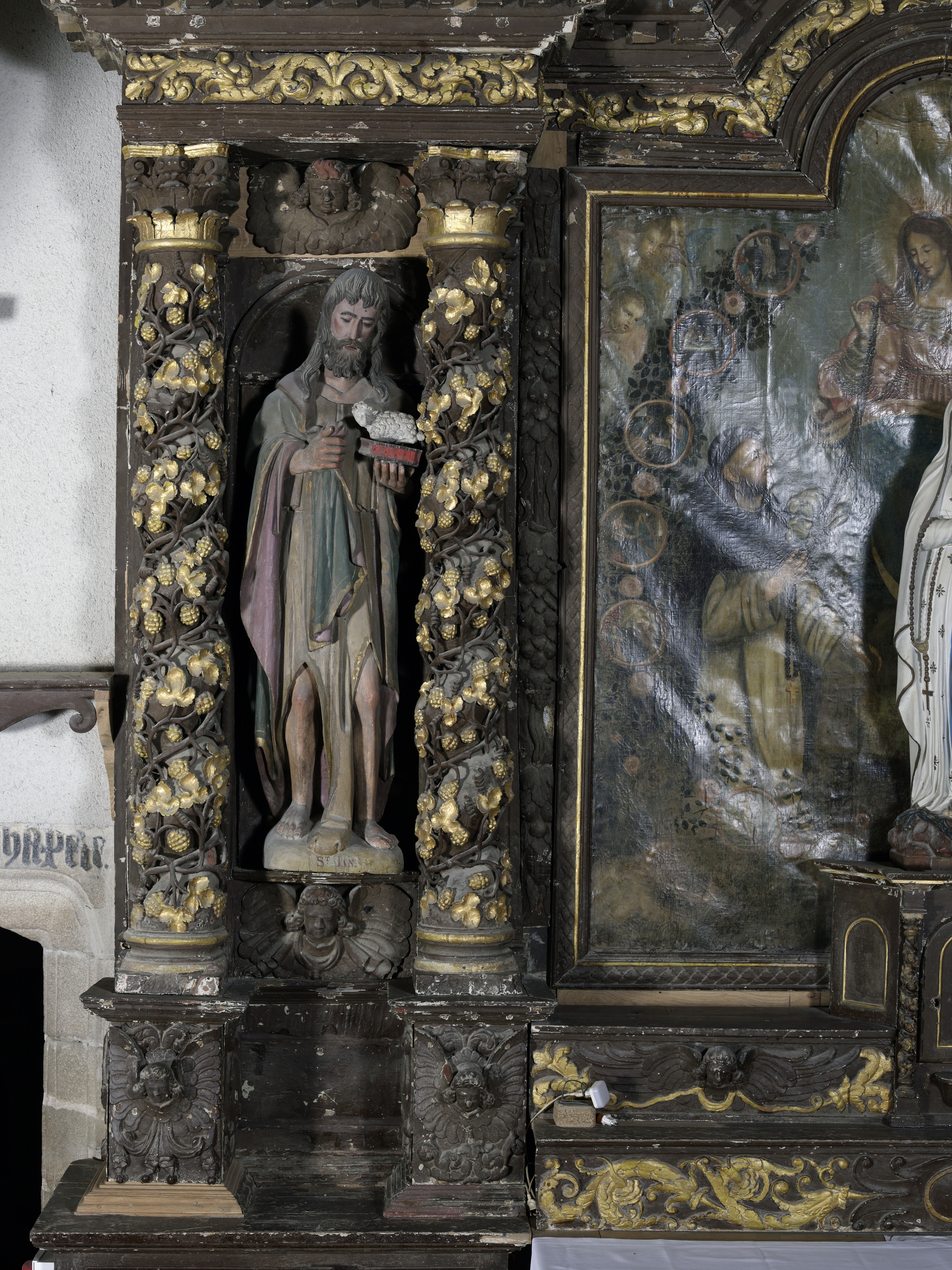 Cavan, le bourg : église paroissiale Saint-Chéron, vue intérieure, retable sud, statue représentant saint JeanImmatriculation