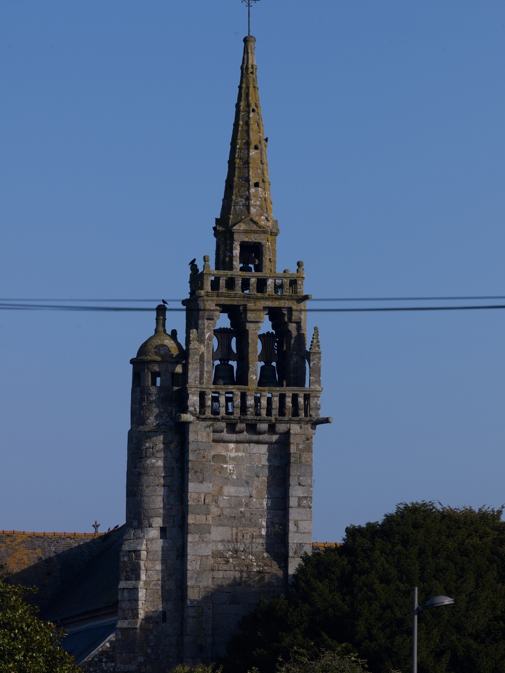 Prat, le bourg : église paroissiale Saint-Pierre, clocher, vue générale depuis l'ouestImmatriculation