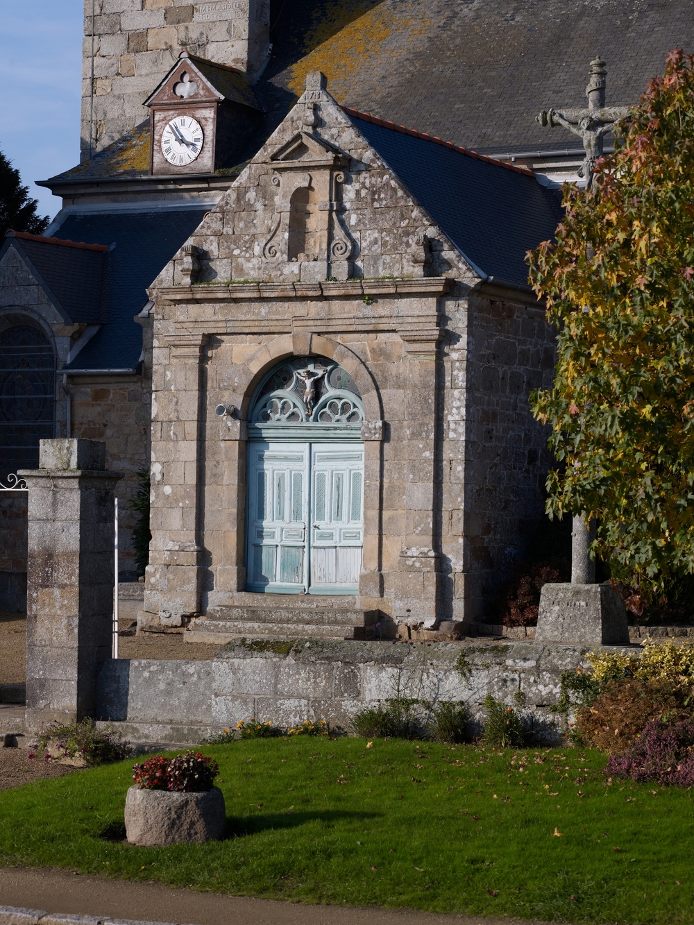 Prat, le bourg : église paroissiale Saint-Pierre, porche sudImmatriculation