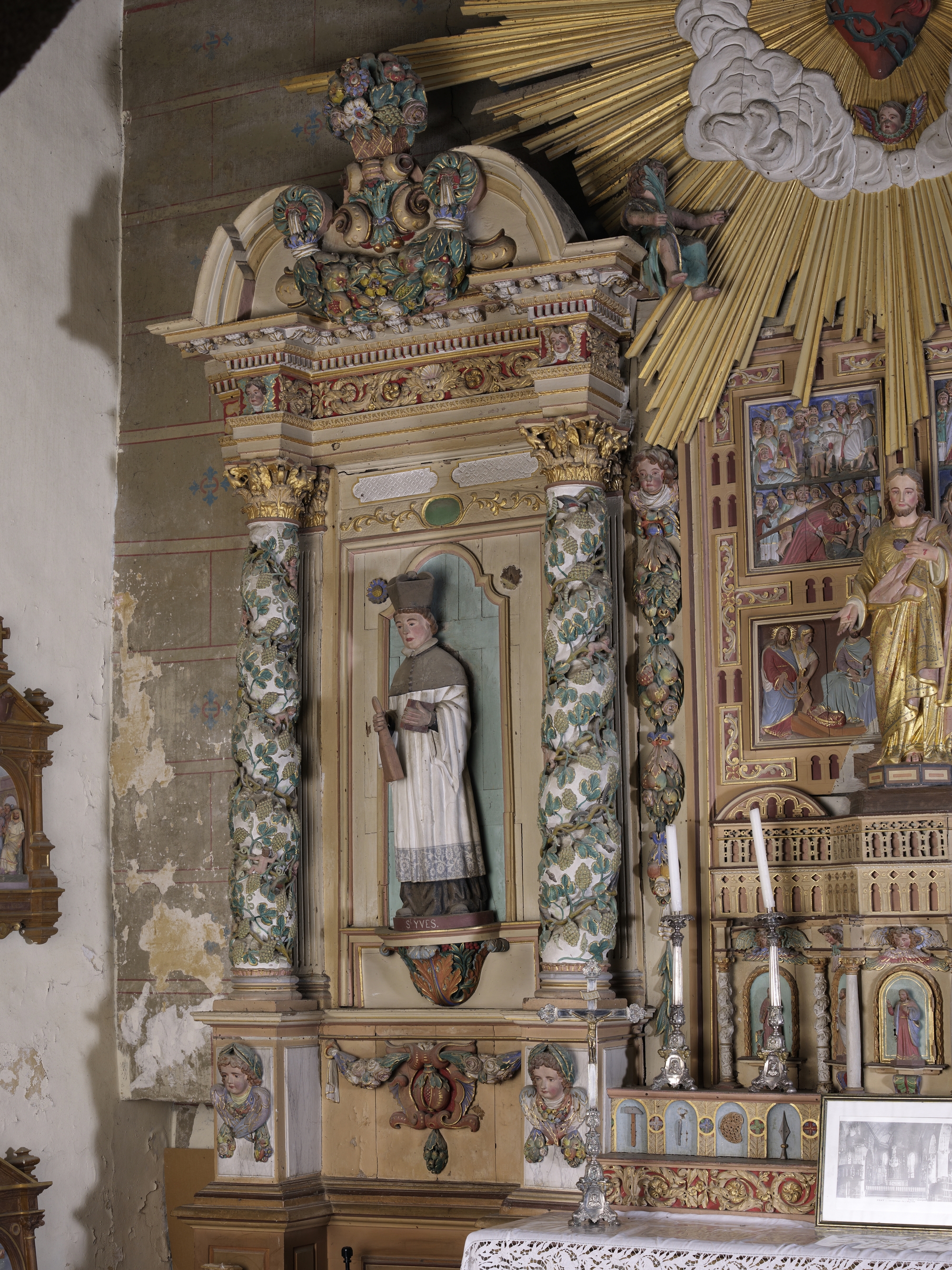 Prat, le bourg : église paroissiale Saint-Pierre, vue intérieure, retable nord, Saint YvesImmatriculation