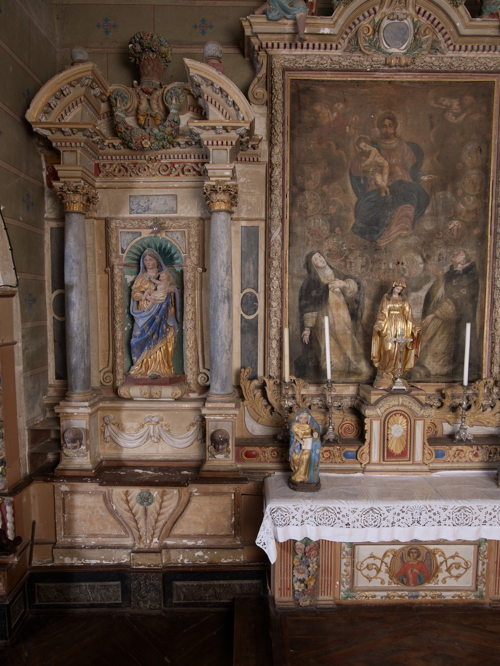 Prat, le bourg : église paroissiale Saint-Pierre, vue intérieure, retable sud, Vierge à l'enfantImmatriculation