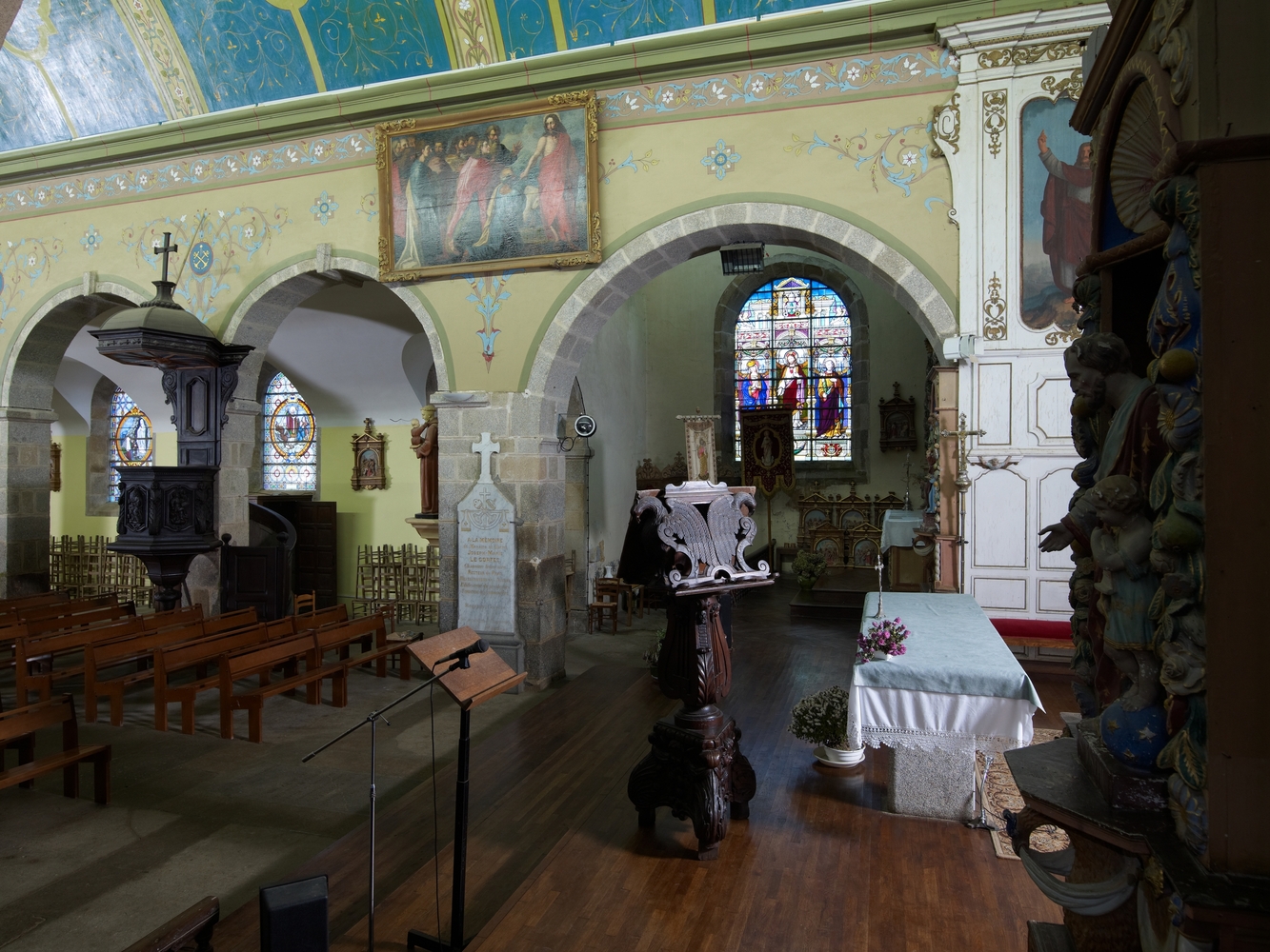 Prat, le bourg : église paroissiale Saint-Pierre, vue intérieure, croisée du transeptImmatriculation