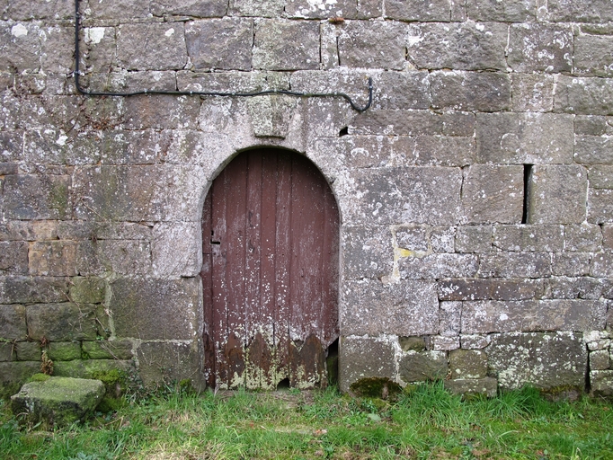 Plouaret, Guilquin : métairie noble, élévation antérieure orientée au nord. Logis est, porte en plein cintre surmonté d'un blason, jour du saloirImmatriculation