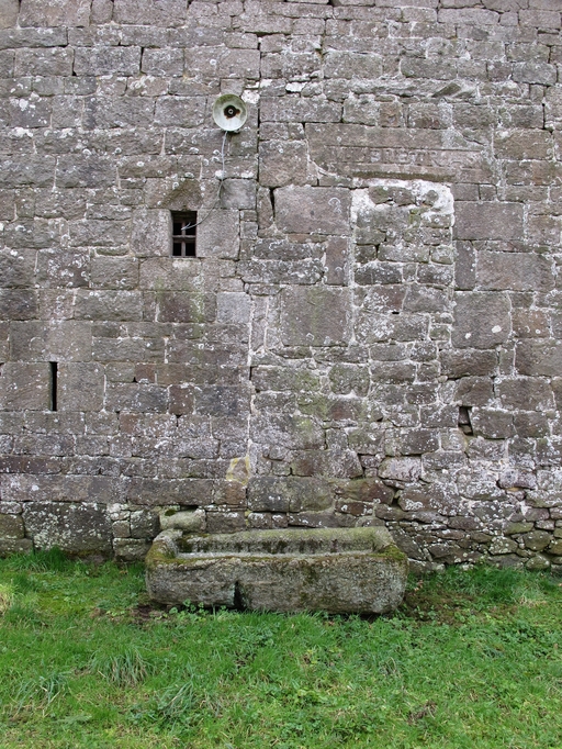 Plouaret, Guilquin : métairie noble, élévation antérieure orientée au nord. Collage entre le logis est et le logis ouest. Logis est : jour du saloir, baie et exutoire d'un évier vers l'auge. Logis ouest : porte hauteImmatriculation