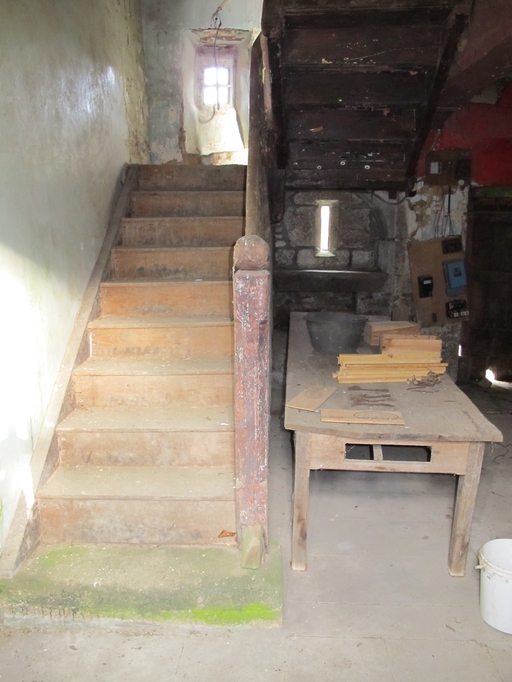 Plouaret, Guilquin : métairie noble, logis est. Escalier droit rampe sur rampe visible à travers la fenêtre sud. Jour ébrasé du saloirImmatriculation