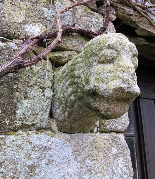 Plouaret, Kerhuon : manoir, fournil adossé au mur d'enceinte, détail de la façade antérieure. Crossette sculptée datable du 16e siècle en remploiImmatriculation