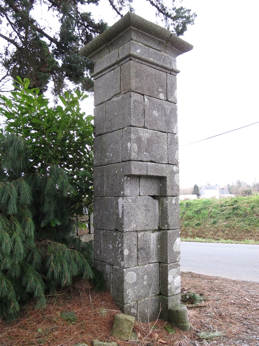 Plouaret, Pont Blanc : portail d'entrée, détail d'un des deux piliers en graniteImmatriculation