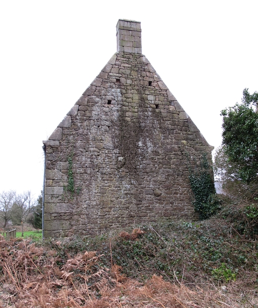 Plouaret, Melchonec : manoir, pignon ouest. Il a conservé son état originel : pente, rampants et crossettesImmatriculation