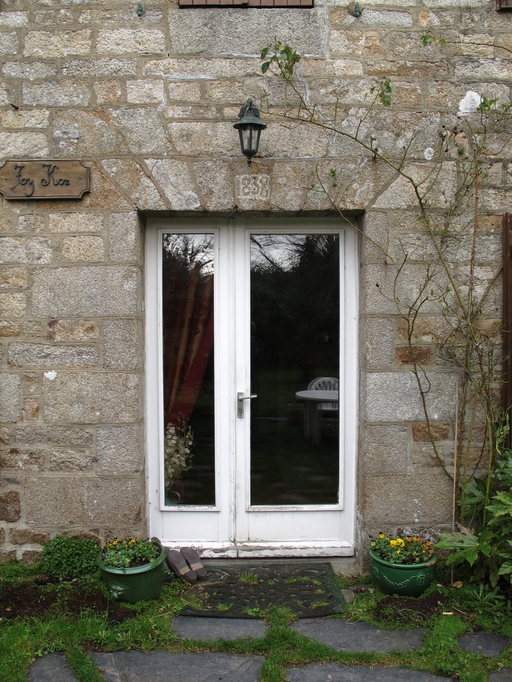 Plouaret, le bourg, 29 rue du Général de Gaulle : maison datée 1838, élévation antérieure, porteImmatriculation