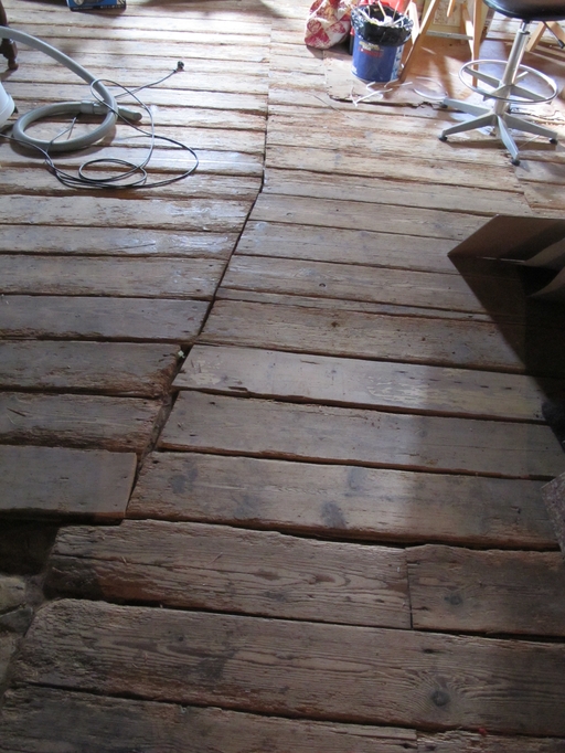 Plouaret, le bourg, 29 rue du Général de Gaulle : maison datée 1838, étage de comble, ancien plancherImmatriculation