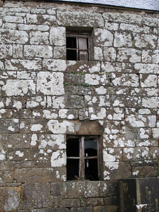 Plouaret, Kerlan : ferme, élévation orientée sud-ouest, détail de la façade, étage, linteau de la fenêtre haute portant le millésime 1664Immatriculation