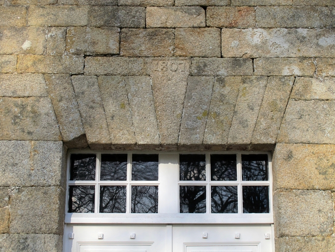 Plouaret, Kerdanet : ferme, élévation antérieure, travée centrale, porte. La clé porte le chronogramme 1807Immatriculation