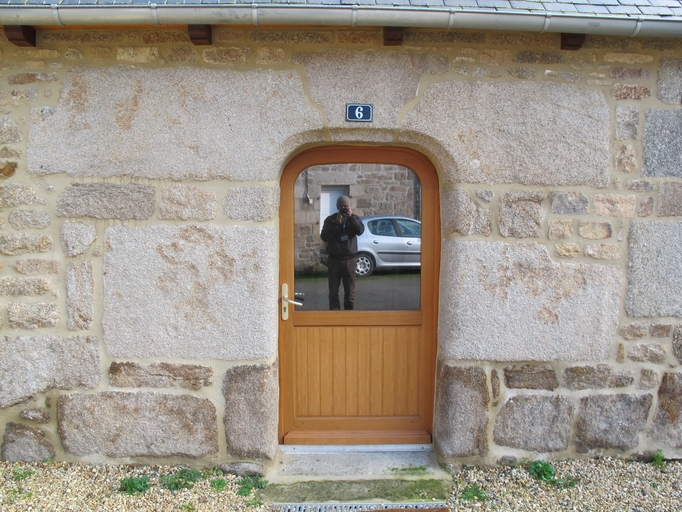 Plouaret, le bourg, Cour Merrer : ensemble de deux logis, logis central, élévation antérieure, porte en arc dépriméImmatriculation