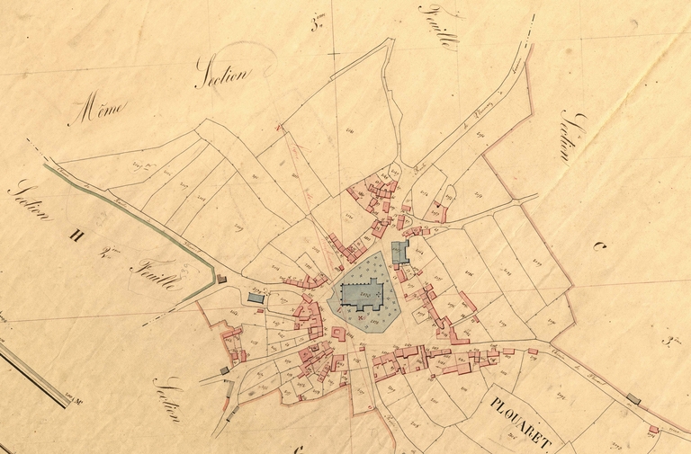 Extrait du cadastre ancien de la commune de Plouaret, 1835 : le bourgImmatriculation