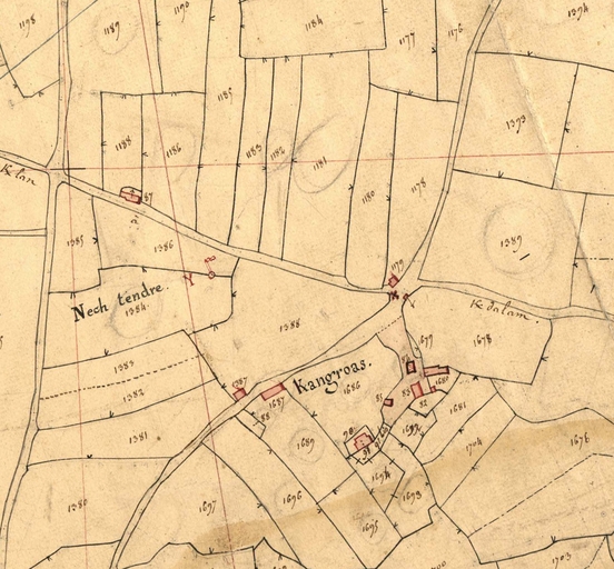 Extrait du cadastre ancien de la commune de Plouaret, 1835 : Kangroas (Kerangros), Saint-Mathieu, Nech tendreImmatriculation