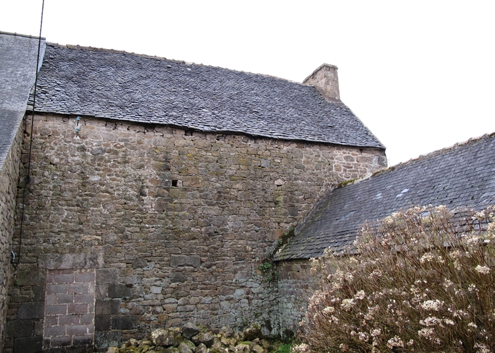 Plouaret, Bernantec : ferme, élévation postérieure. Porte arrière datable de la 1ère moitié du 19e siècle et linteau datable du 16e siècle en remploiImmatriculation