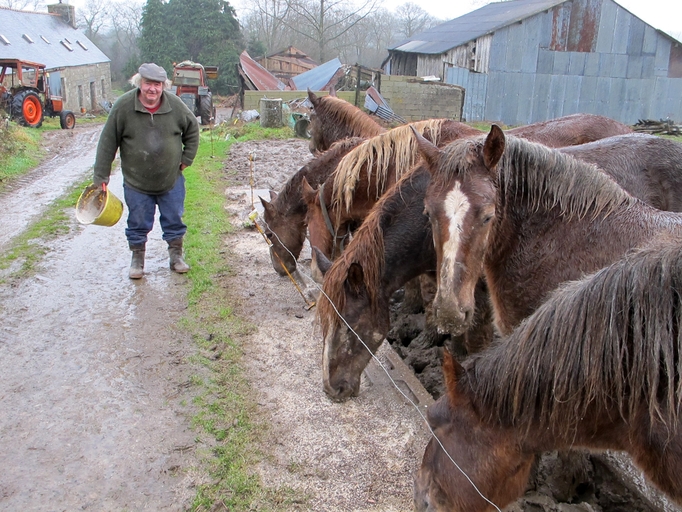 Plouaret, Kerguib : le propriétaire de la ferme et ses chevauxImmatriculation