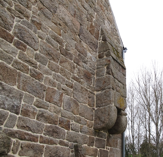 Plouaret, Traou Milin : maison de prêtre, pignon orienté nord-est, détail des latrines en encorbellementImmatriculation