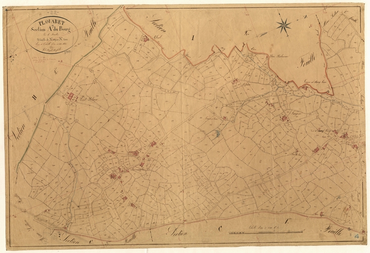 Cadastre ancien, commune de Plouaret, 1 tableau d'assemblage et 15 feuilles, 1835.Cadastre.