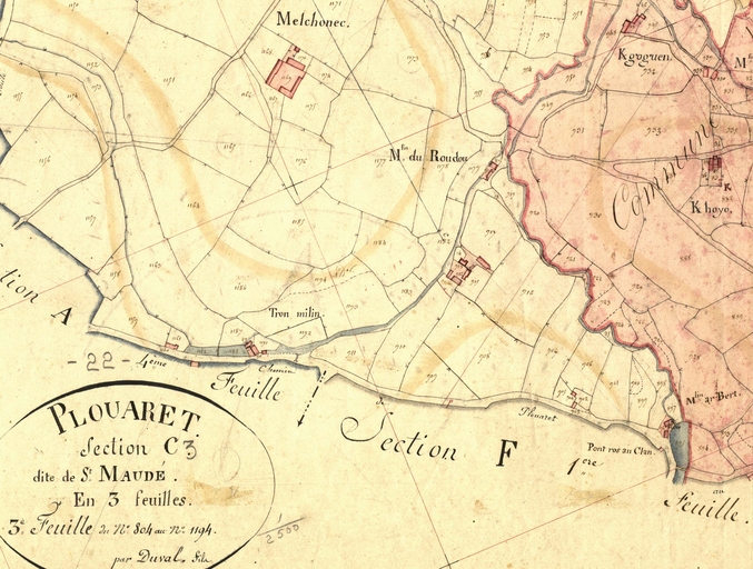 Extrait du cadastre ancien de la commune de Plouaret, 1835 : Traou MilinImmatriculation