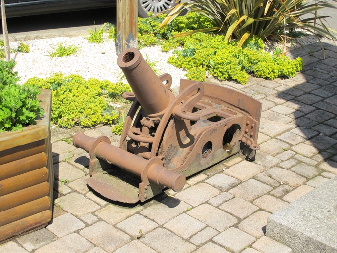louaret, le bourg, place de l'église : monument aux morts (1914-1918 ; 1939-1945 ; 1954-1962), mortier français de 58 n° 2 dit Crapouillot de l´armée françaiseImmatriculation