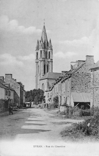 Reproduction d´une carte postale ancienne, Rue du Cimetière, fonds : Pierre MarquéImmatriculation