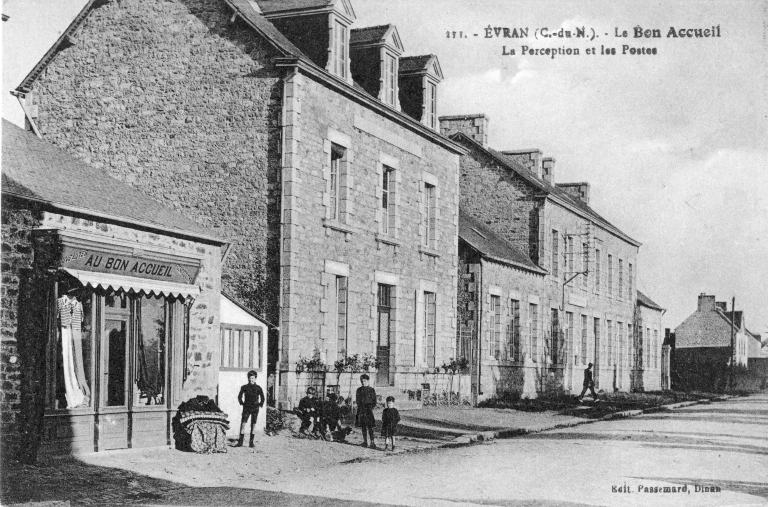 Reproduction d'une carte postale, La perception, et les Postes, Passemard, éditeur, Evran, fonds : Pierre MarquéImmatriculation