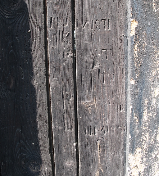Berhet, Coat Berzot : dépendance, détail de la porte (datée 1871)Immatriculation