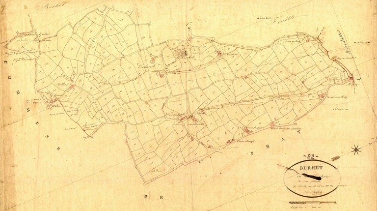 Cadastre ancien, commune de Berhet, 1 tableau d'assemblage et 2 feuilles, 1835.Cadastre.