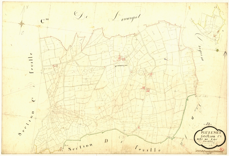 Feuille C3 du cadastre ancien de la commune de Pluzunet, 1834Immatriculation