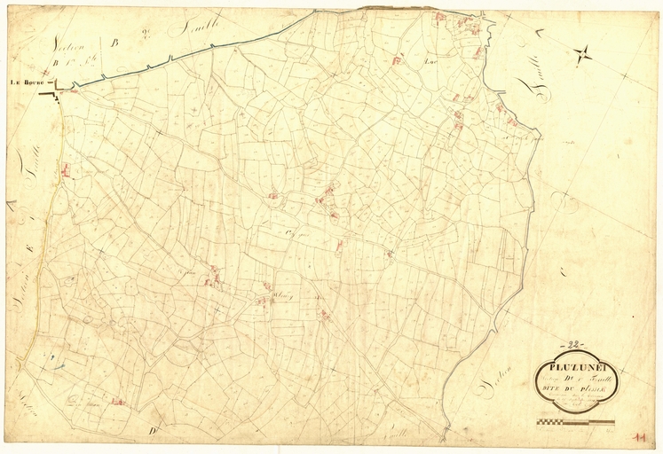 Cadastre ancien, commune de Pluzunet, 1 tableau d'assemblage et 14 feuilles, 1834.Cadastre.