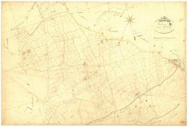 Cadastre ancien, commune de Pluzunet, 1 tableau d'assemblage et 14 feuilles, 1834.Cadastre.