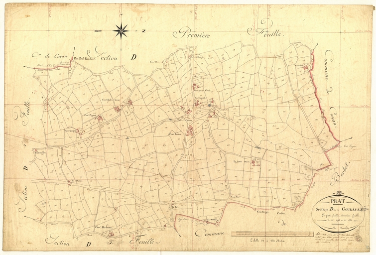 Feuille D2 du cadastre ancien de la commune de Prat, 1835Immatriculation