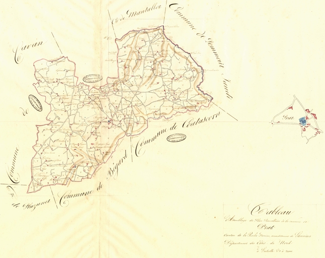 Cadastre ancien, commune de Prat, 1 tableau d'assemblage et 16 feuilles, 1835.Cadastre.