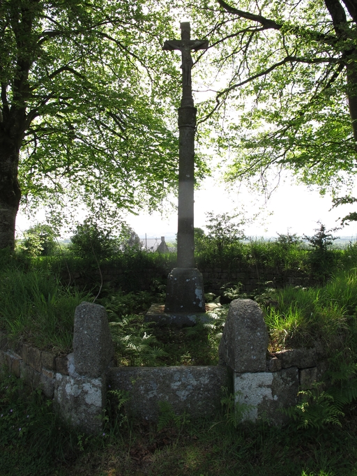 Pluzunet, carrefour des routes départementales n° 32 et 33 : croix de mission datée 1888. Inscription : O CRUXI AVE SPES UNICAImmatriculation
