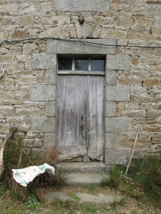 Pluzunet, Kerlistouedou : ferme, élévation antérieure, détail de la porte d'entrée (à noter : le petit arc de décharge au dessus du linteau droit)Immatriculation