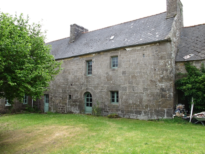 Pluzunet, Kervern : alignement composé de deux logis de ferme, élévation postérieure orientée vers le nord. Logis datable de la fin du 16e siècle ou du début du 17e siècleImmatriculation