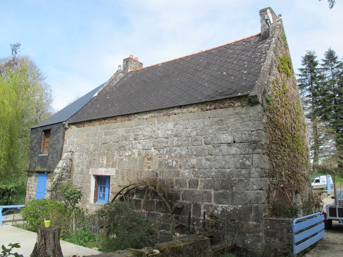 Caouënnec-Lanvézéac, Runangos : moulin à eau sur le Guindy, élévation postérieure orientée vers le sud-ouest et roue à aubesImmatriculation