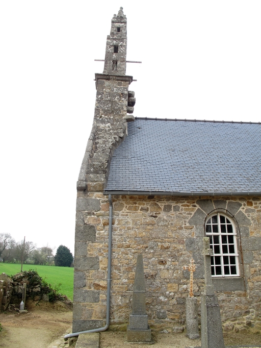 Caouënnec-Lanvézéac, bourg de Lanvézéac : église paroissiale de Saint-Ezéchiel, mur-clocherImmatriculation