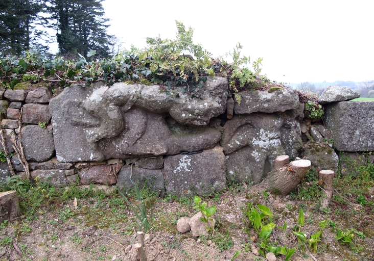 Caouënnec-Lanvézéac, bourg de Lanvézéac : église paroissiale de Saint-Ezéchiel, crossette sculptéeImmatriculation