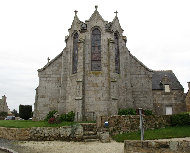 Caouënnec-Lanvézéac, bourg de Caouënnec : église paroissiale de Notre-Dame, vue est, chevet à 3 pansImmatriculation