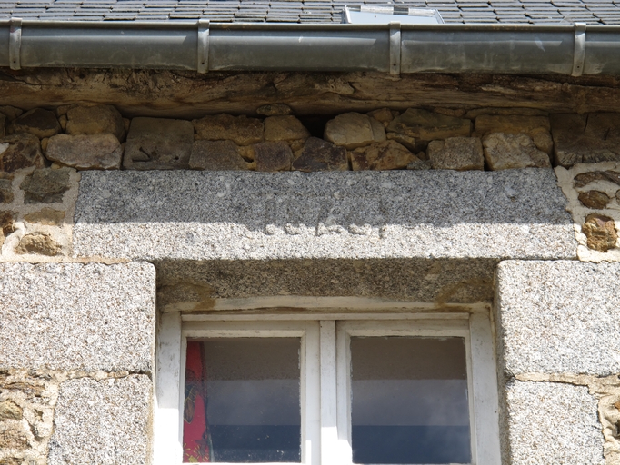 Coatascorn, Hent Garnel Braz : ferme, logis ouest, élévation antérieure, détail du millésime 1846 situé sur le linteau de la fenêtre axialeImmatriculation